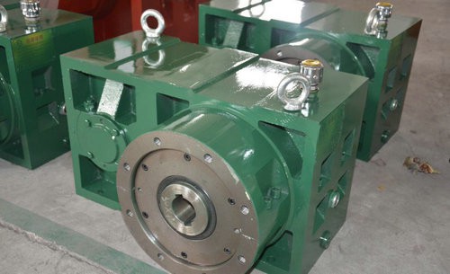 ZLYJ減速機是為了塑料螺桿擠出機配設計的高精度硬齒面帶推力的傳動部件。產品設計采用了JB/T8853-2001所規定的各項技術規范。其特點是齒輪和軸類件采用了高-強度合金鋼。齒輪經滲碳、淬火、廉齒工藝加工。齒輪精度為GB10095-886級。齒面硬度HRC54-62.在空心輸出軸前端配有超規格的推力軸承,承受螺桿的工作軸向力。軸承和油封等主標準皆采用國內優良產品,也可按用戶需要,配裝進口產品。整機具有體積小.承載能力高、傳動平穩、噪聲低、效率高等特點。產品性能已達到國際先進水平。可替代同類型進口產品使用。本系列產品中的規格和傳動比為現有用戶的常用數據。用戶在選用時,可將桿的實際傳動扭矩與許用輸出扭矩為準選型。若需與橡膠擠出機配妻,因橡膠擠出機沖擊力較塑料強.請用戶提出具體技術參數.向我廠咨詢再確定選型。